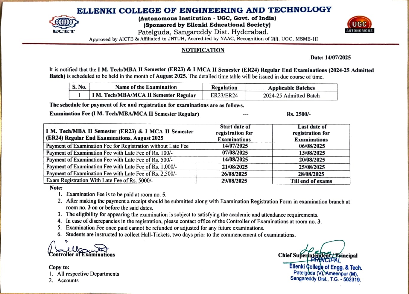 Founded over two decades ago, Ellenki College of Engineering & Technology has earned its reputation as one of the premier private engineering colleges in Hyderabad. Spanning a vast campus, the college is approved by the All India Council for Technical Education (AICTE), New Delhi, and is affiliated with Jawaharlal Nehru Technological University, Hyderabad (JNTUH).