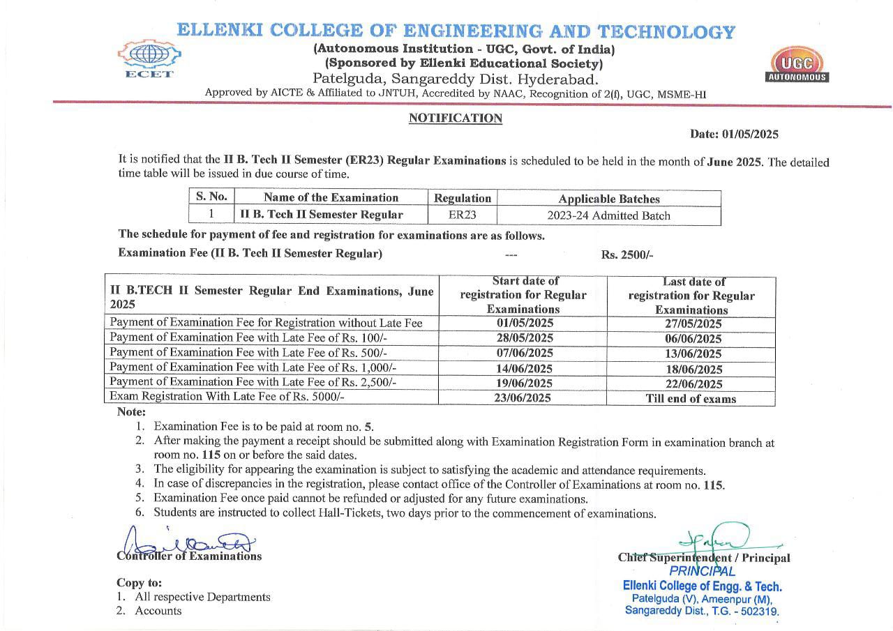 II B. Tech II Semester Regular Exam Notification..2024 Batch