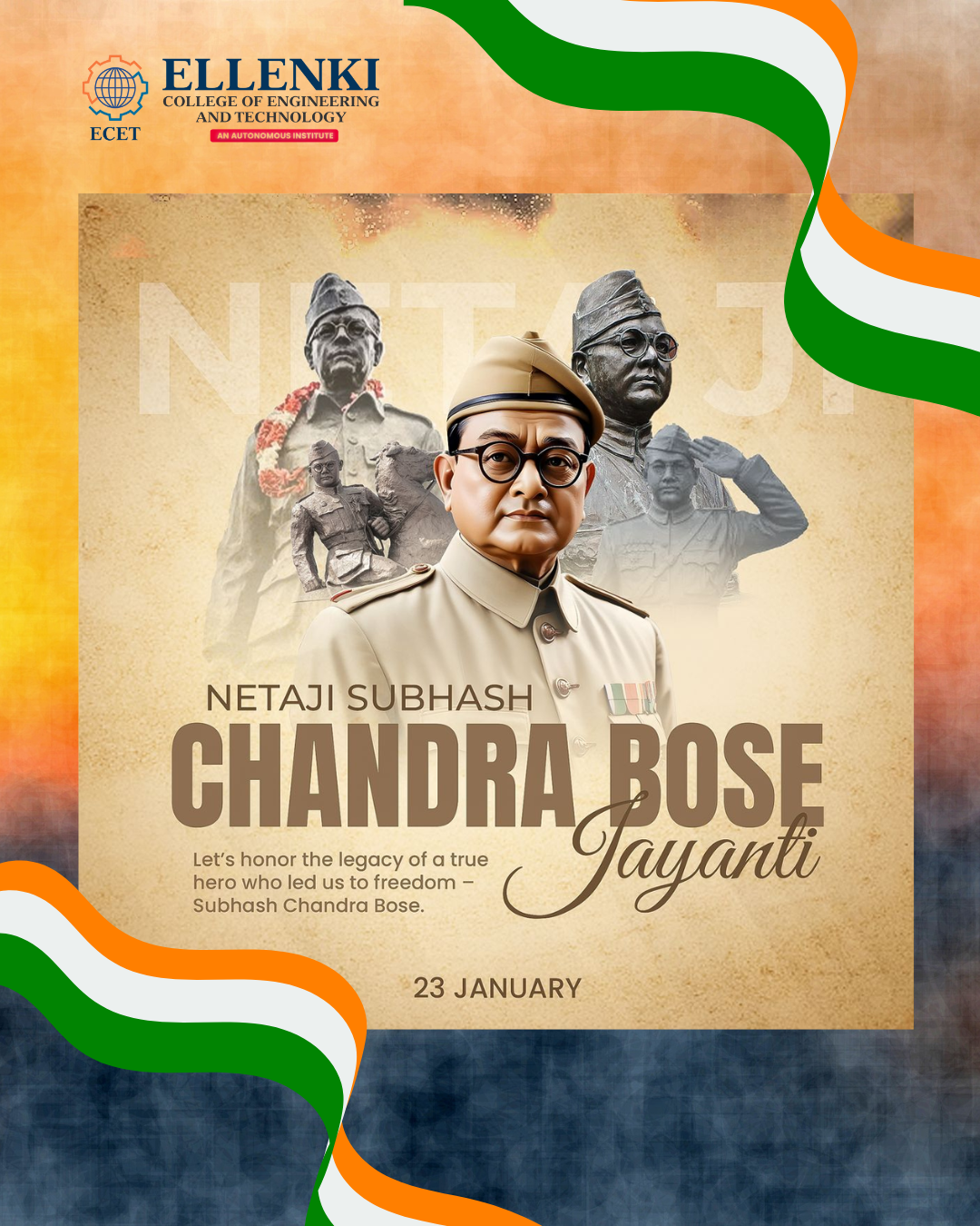 Ellenki College of Engineering and Technology proudly commemorates Subhash Chandra Bose Jayanti, honoring the birth anniversary of one of India’s greatest freedom fighters and visionary leaders.